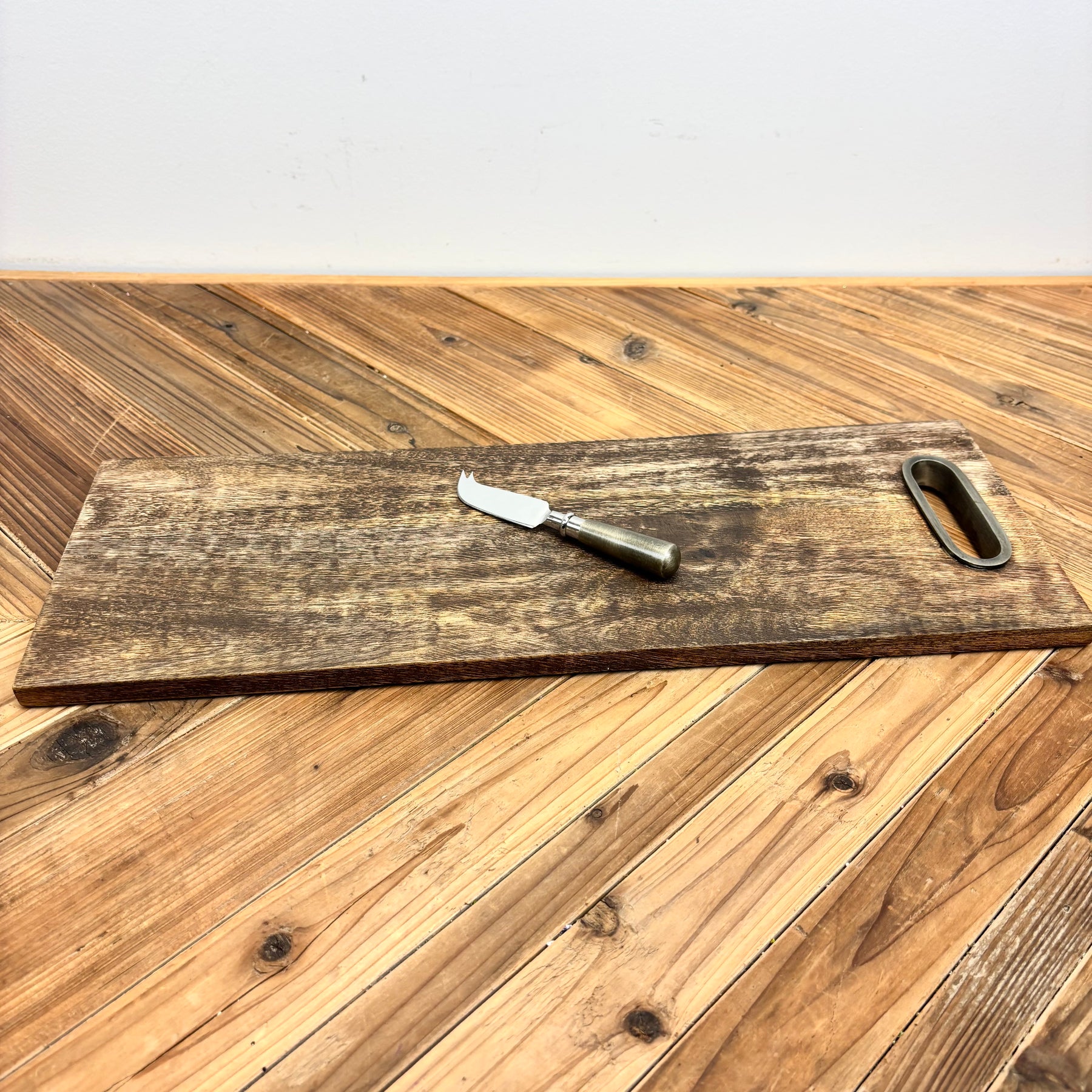 Stained Mango Wood Serving Tray with Cheese Knife