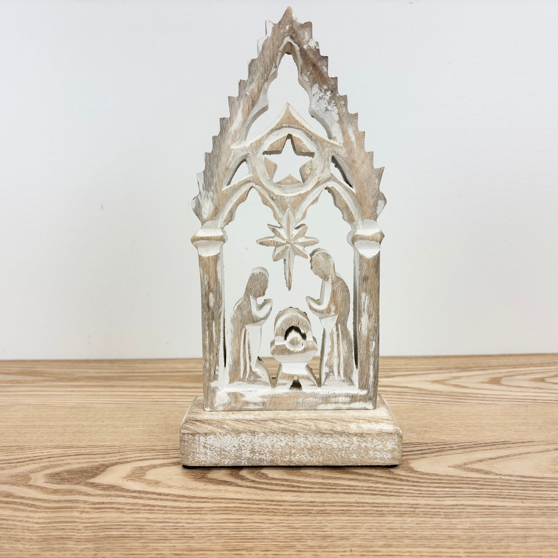 White Washed Mango Wood Nativity