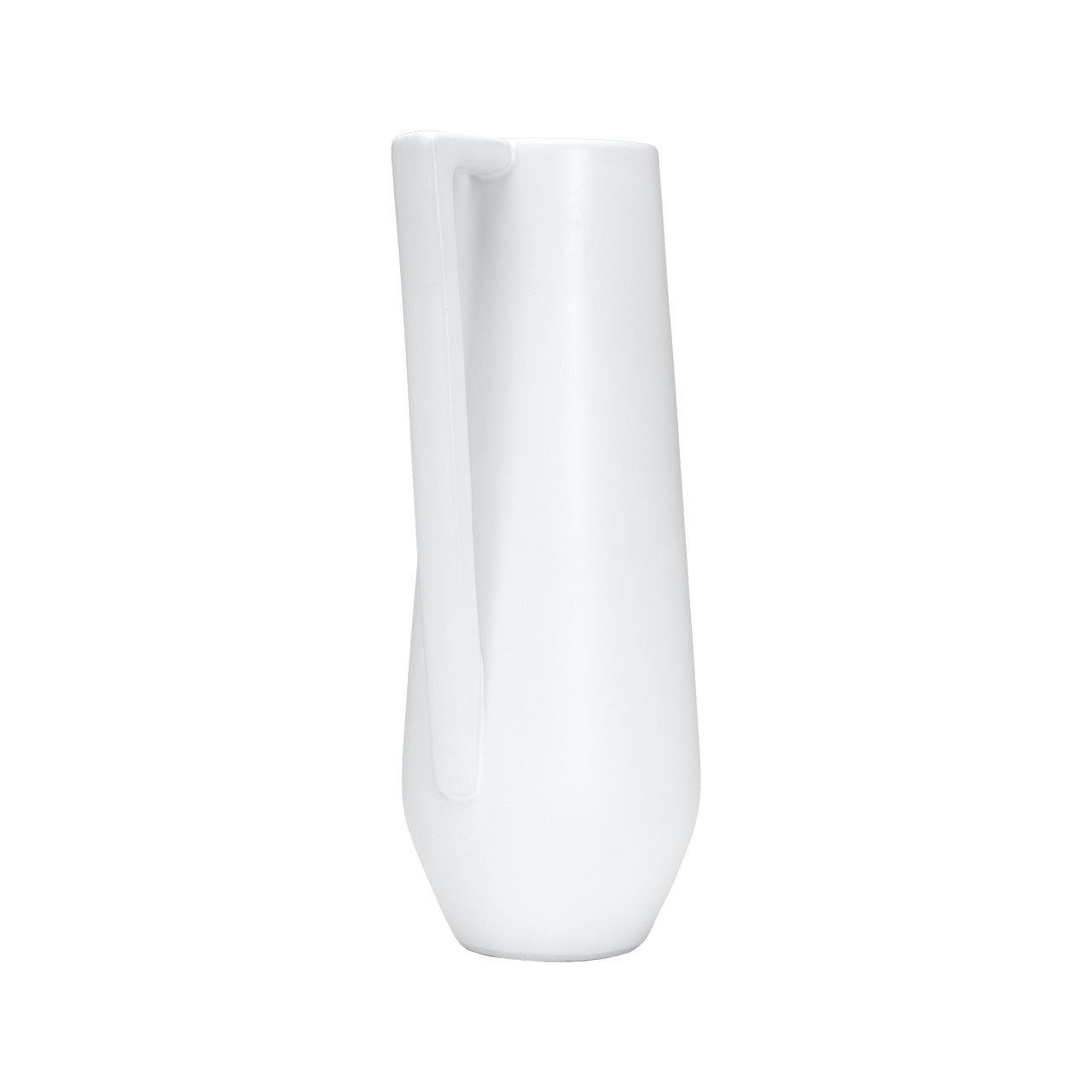 The Zehr Tall Pitcher Vase brings a refined balance of simplicity and artistry to your decor. Standing 12 inches tall with a slim 5-inch length and 4-inch width, this vase features a sleek, elongated body finished in smooth matte white, offering a clean and versatile look that complements both modern and traditional interiors. Its sharply angled handle creates a striking geometric detail that enhances the overall silhouette, transforming a simple ceramic form into a piece with contemporary character. Whether used as a standalone decorative accent, grouped with other vases for visual interest, or styled with faux botanicals, the Zehr Pitcher Vase serves as a versatile accessory that can adapt to any setting. Crafted from durable ceramic, it not only adds sophistication to shelves, counters, or entryway consoles but also offers the durability and craftsmanship expected from a piece designed to last. Its minimal yet distinctive design ensures it will remain a timeless addition to your collection.